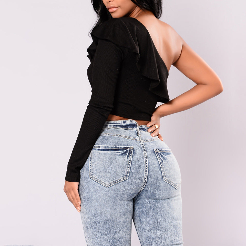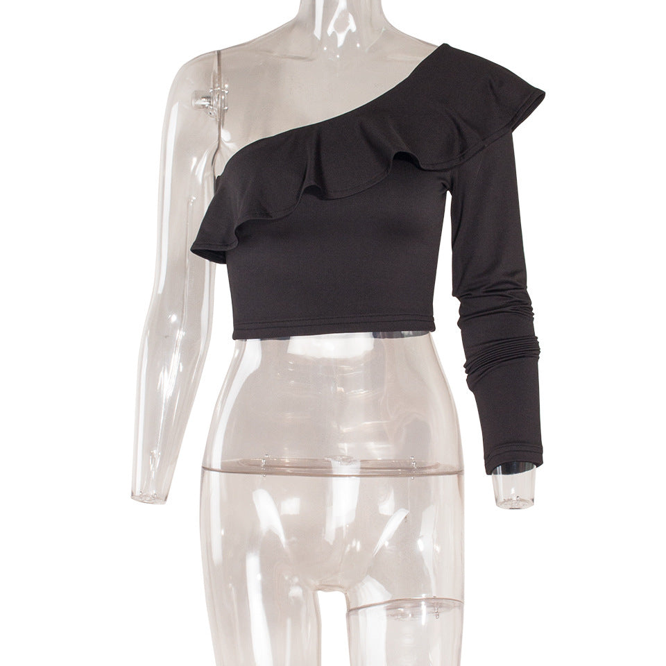 one shoulder ruffled cropped top
