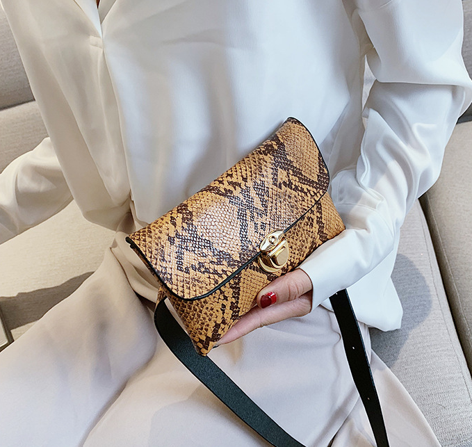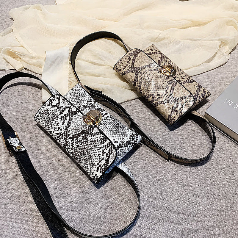 2019时尚休闲腰包欧美蟒蛇纹插锁胸包迷你信封女包手机包腰带小包
